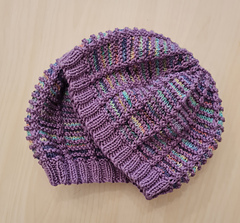 Based on our Elegy to Morfa and Just Grillin’ Cowl patterns, we wanted to experiment with other yarns and make a hat in the same slip-stitch pattern.
