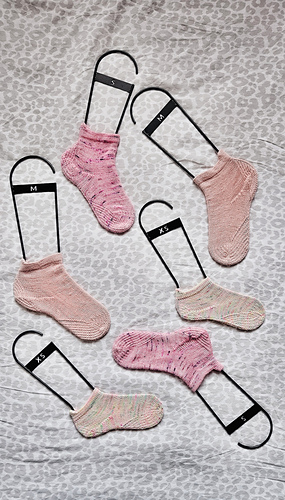 Circumference and length of the sock before blocking should be ~1 - 2cm less than your foot dimensions, otherwise it can slip easily while wearing.