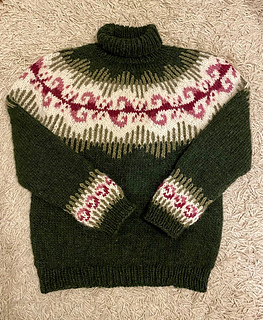 Yarn: Any bulky-weight yarn with the gauge 13 sts * 18 rows = 1010 cm (44 “). The sample sweater is knitted with Icelandic Álafosslopi.