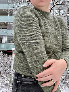 Storleksguide: Plagget stickas med ca 2-5cm rörelsevidd d.v.s. 2-5 cm större än din bystvidd. Om din bystvidd mäter 110 cm väljer du plagget som avser bystvidd 115 cm. Du kan självklart välja mer rörelsevidd om du önskar, men plagget får då ett något annat uttryck. Eftersom strukturen har en ribbad struktur har jag använt mig av mindre rörelsevidd, då plagget formas efter din byst och axlar.
