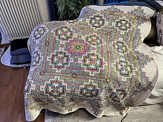 - Single page full size charts for both the Throw Version and the Full Size Blanket Version which work well with apps such as Knit Companion to allow you to work digitally.
