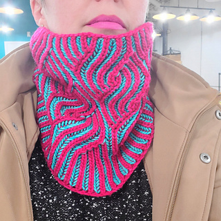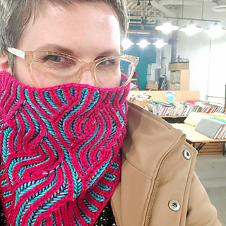 Kanata is a suburb of Ottawa, Canada’s capital city. Located on the western edge of the city, it is home to Ottawa’s hockey arena, large outlet stores, strip malls, and subdivisions. It’s also home to Maker Savvy, a rainbow-hued gem of a fabric and yarn shop, where I first used this cowl pattern to teach an intro to brioche knitting class. It uses a base of two-colour brioche rib stitch, with a simple increase & decrease sequence.