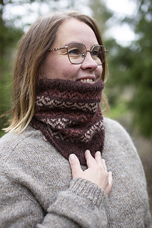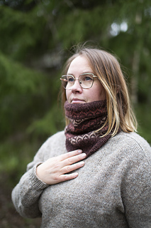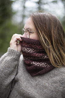 Kauluriin tarvitset yhden vyyhdin Jalovillan Vuonaa (menekki noin 40 g) ja noin 20 g kumpaakin kuvioväriä tai muuta fingering-vahvuista lankaa. Tämä on siis sopiva projekti niin niille yksinäisille vyyhdeille, joita on tullut ihastuksissaan ostettua, kuin jämälangoille.