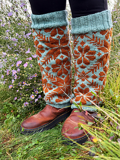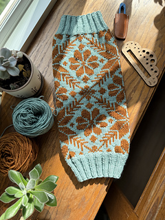 The third in a series of patterns inspired by my Norwegian heritage, designed to create cozy comfort while honoring traditional motifs. A symmetrical colorwork pattern worked in the round with ribbing on either end. Pair of two.
