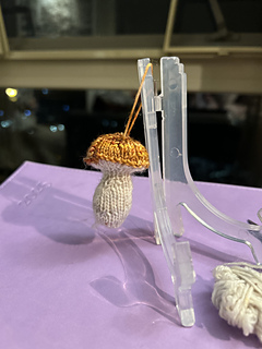 This cute Karl Johan (Penny Bun) Mushroom ornament is a great way to use up DK weight scrap yarn.