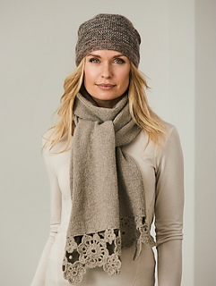 A beautiful and classic scarf with delicate crocheted flowers at the ends, giving the design a feminine and unique expression. The scarf combines simple knitting with decorative details and is an elegant accessory that can be worn both for everyday use and on cool evenings all year round.