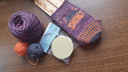 Ce design m’a été inspiré par la « méchanceté » d’une amie pour accompagner ma boxe d’Halloween. J’ai donc imaginé un jacquard et créer des coloris pour représenter ce duo.