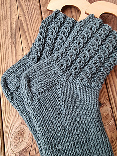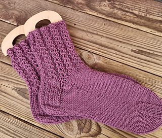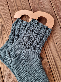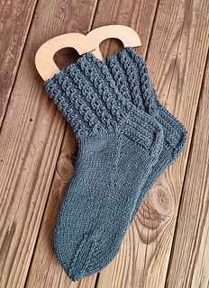 The Kauko socks are knitted in the round top down with a heel flap and gusset construction and a wedge shaped toe.