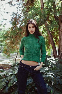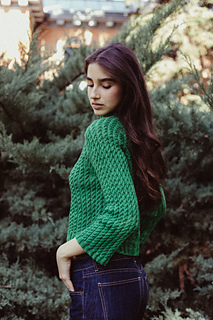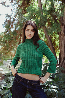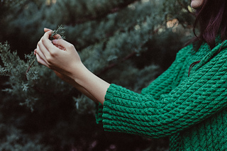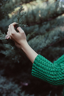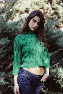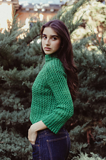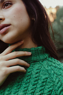 The Kelly Sweater is worked seamlessly from the top down. You’ll begin with a double folded ribbed neckline. Raglan markers are then placed, and German short rows are worked while simultaneously starting the cables and yoke increases. Once the short rows are complete, continue working the cable pattern along with the raglan increases. Separate the body and sleeves, and work each section to the desired length, finishing with a ribbed edge.