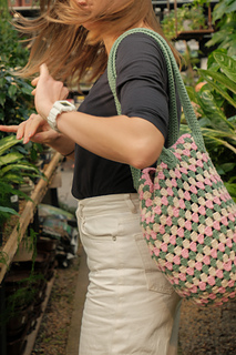Kervoyal Beach Bag is a very simple bag made with granny stitches and worked in rounds. It has a practical closing system made out of two i-cords sewn inside. Handles are based on two long ovals with both long edges sewn together on most of their length, which makes them comfortable and non-stretchy.