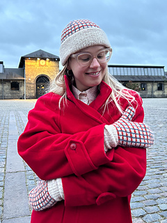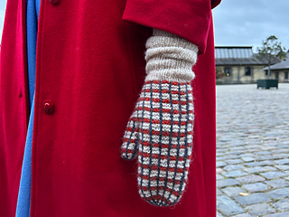 Khione Mittens are worked in the round in rib and stranded colourwork following a chart. First, the ribbing is worked, then the hand in colourwork with increases for the thumb and decreases shaping the fingertips. Finally, the thumb is worked.