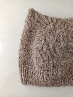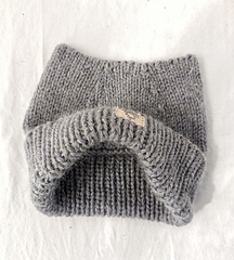 This hat is worked from the bottom up, beginning with a 1x1 ribbed brim. The body transitions to a stockinette stitch. The hat’s distinctive feature is its closure: the tube is flattened and the top is grafted closed with the Kitchener stitch. This seamless finish forms a subtle “cat ear” silhouette.