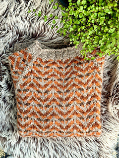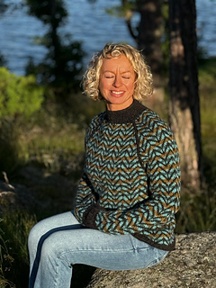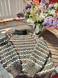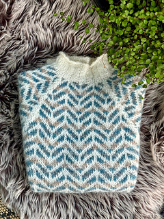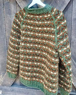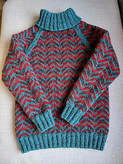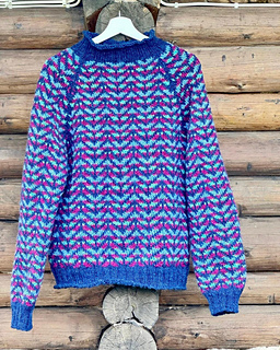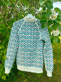 The body and sleeves are knit separately from the bottom up, in the round, with circular or double pointed needles. At the armpits the pieces are joined and the yoke is knitted with raglan decreases. Finally, the armpits are grafted closed and the sweater is blocked.