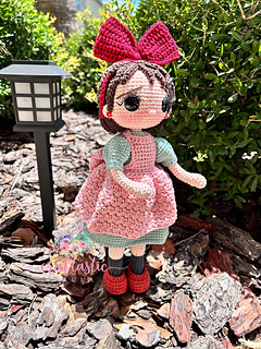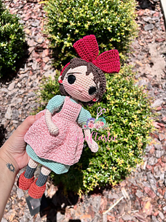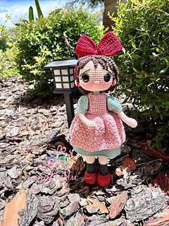 I crocheted Kiki with a 2,20mm crochet hook and sinfonia yarn (sport weight) and she measures about 30cm.