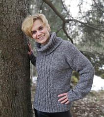 The trunks of old pine trees covered in thick, patterned bark were the inspiration for this sweater. “Kilpikaarna” is the word for thick bark in Finnish.