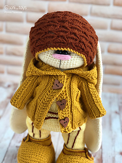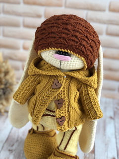 - 5 articles of removable clothing (t-shirt, kni toveralls, knit hat, shoes, knit cardigan)