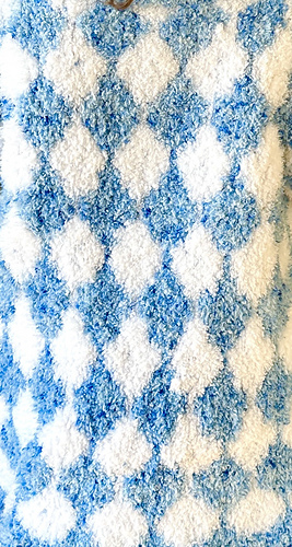 And it looks great, too! A truly successful way to use up leftovers – and a happy grandchild. What more could a knitting grandma want?