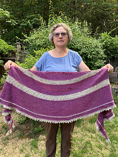 The Kindness Blooms Shawlette is a beginner-level, worsted-weight, crescent-shaped shawlette worked flat from the top down. Simple stockinette stripes are offset by contrasting sections representing stages of growth: first, a seed stitch section, for planting the seeds of kindness; second, a section of twisted knit stitches representing new sprigs of growth; third, a beautiful lace garden of gathered and open stitches representing a field of flowers; and finally, a lovely picot edge of seed buds that travel from our hearts to the rest of the world, spreading new seeds of kindness to everyone we meet.