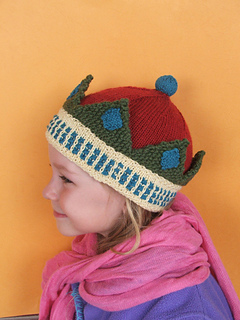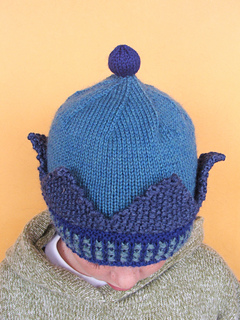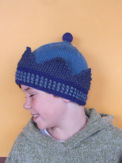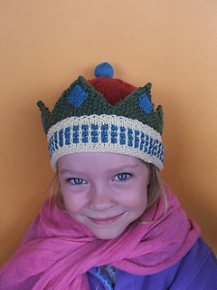 Here is a wonderful crown pattern for any little kings or princes (or queens or princesses for that matter). It is knitted-in-the-round and so requires a 40cm/16 inch 3.75mm/US size 5 circular needle and a set of 4 dpns to match. It’s quite quick to knit up, although the optional jewels require some hand sewing to attach them.