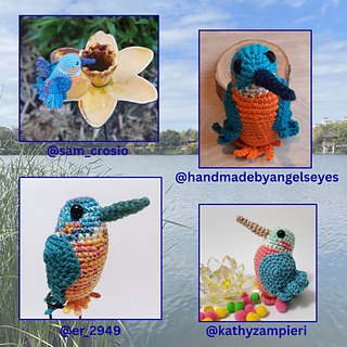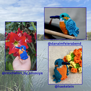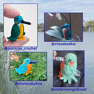 With hook size 2.5, the Kingfisher will be around 9.5 cm tall, 5 cm long and 4 cm wide.