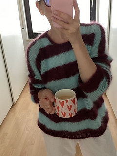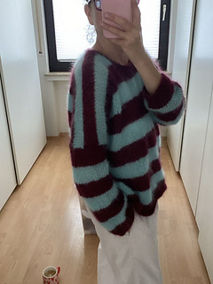 GARNVARIANTE 3 (gestreift): “Mohair Luxe” (175 m/25 g) in Wein 164 (Farbe 1) und Mint 058 (Farbe 2) von Lang Yarns