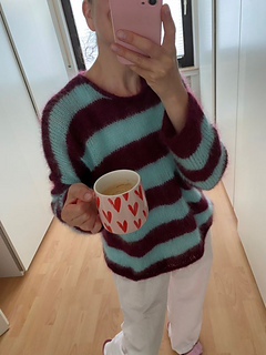 The KIRA Jumper is an oversized basic sweater with heavily dropped shoulders, a round neckline and narrow sleeves. You will work this sweater top-down.