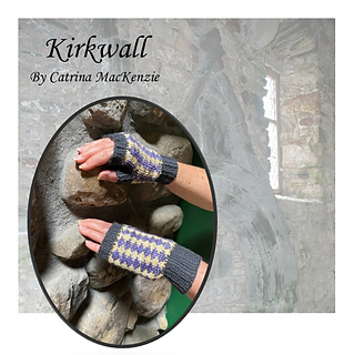 The string of diamonds pattern on these mitts remined me of the isles of Orkney looking like diamonds in the North Sea above mainland Scotland. The principal town of Orkney is Kirkwall, meaning church wall. This pattern is worked in Tunisian crochet in the round and is a great use for yarn minis.