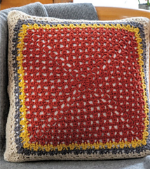 White, red, yellow, blue granny-style pillow cushion. Two designs.