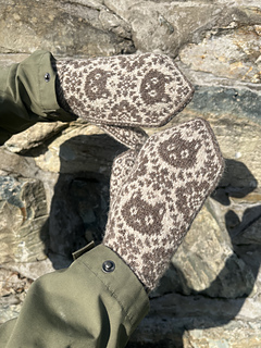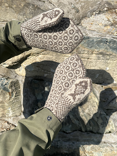 Yarn: The samples are knitted in Jamieson’s Shetland Spindrift. The brown (MC) is 107 Mogit and the white (CC) is 105 Eesit.