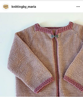 Den strikkes frem og tilbake i glattstrikk og avsluttes med en I-cordfelling for en fin kant på jakkens sider. Siden jakken strikkes ovenfra og ned kan den prøves på underveis for å få en ønskelig lengde for et best mulig fornøyd resultat.