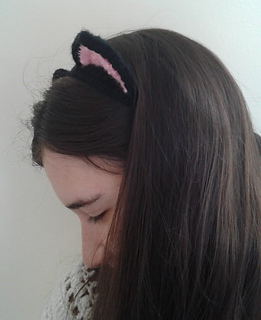 Who hasn’t dreamed of being a cat at one time or another? When I was around 10, my sister and I made kitty ear headbands out of paper for Halloween. Now I’ve made a crochet version that’s much more durable and washable.