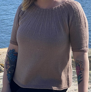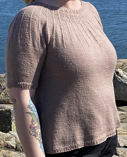 Klara tee is a top with beautiful rays from the neckline. It is knitted top down on circular needles and is completely seamless. The top is designed to have a positive ease of about five centimeters and is slightly wider at the bottom for a looser fit. It is knitted in Yarnwick Blenda Gotland 50/50, here in the color Soft rose. All designs are available at Stickwick.se, Ravelry and from Yarnwick’s resellers.