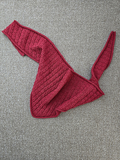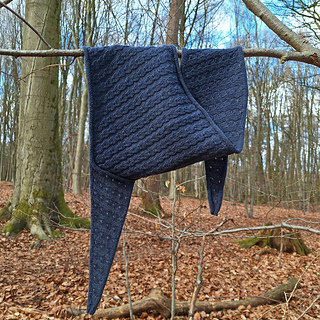 Knitted with Bio Balance by BC Garn and using 3.00 mm (US 2.5) needles, my Kleine Hazel has a wingspan of 160 cm (63“) and a depth of 33 cm (13“).