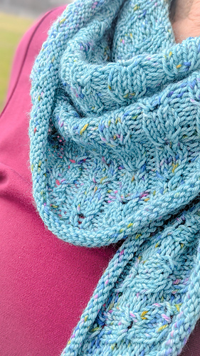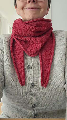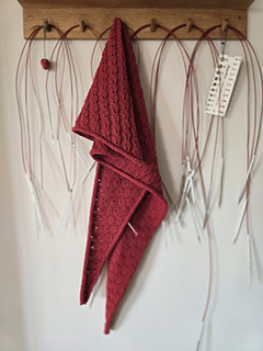 In diesem Tuch moderater Größe, übernimmt das von mir entworfene Hazel-Muster die Hauptrolle.