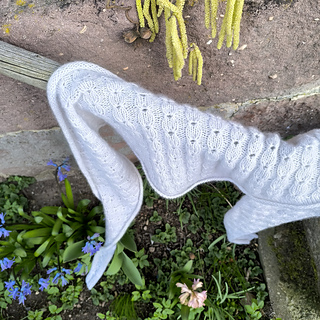 Falls du ein abweichendes Garn verwendest, empfehle ich dir, das gewählte Garn zu testen, so dass das Tuch einen angenehm fließenden und lockeren Fall erhält und du die passende obere Weite erhältst.