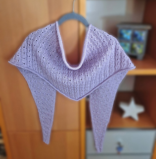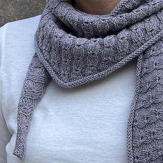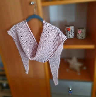 Kleine Hazel, „Little Hazel“, features the same cute stitch pattern as her bigger sister, the Hazel Shawl.