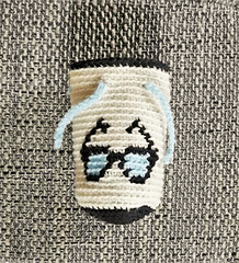 Das Motiv ist in der Tapestry-Technik gehäkelt, also in festen Maschen mit Farbwechseln an den entsprechenden Stellen.