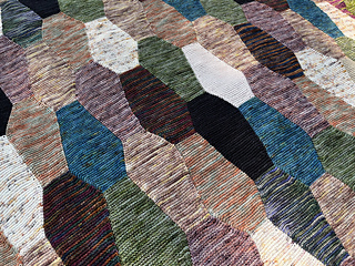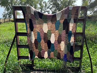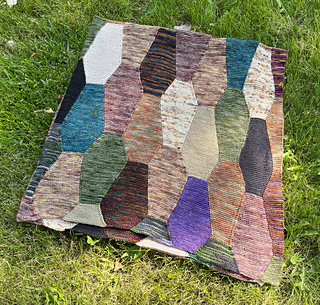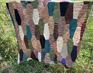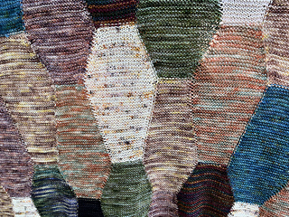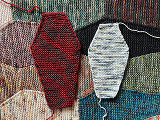 This blanket can be made several ways: You can make individual coffins to be sewn together later, in strips to be sewn together, or in strips to joined together as you go along. There are also instructions for how to knit the strips of coffins two at a time using intarsia while joining.