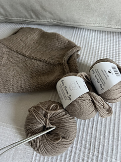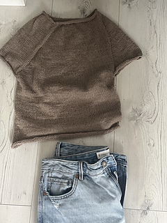 The Easy Knit Tee is a seamless, top-down knitting pattern designed for a clean and modern look. The garment is worked entirely in stockinette stitch, with no ribbing at the neckline, sleeves or hem, creating a minimal and refined finish.