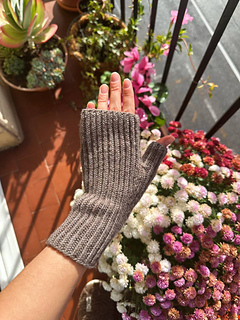 Skills needed to knit these hand warmers: Half-Twisted K1 P1 Rib, cast on (+ loop cast on), elastic bind off, increases: M1R, M1L, M1PR, M1PL