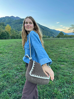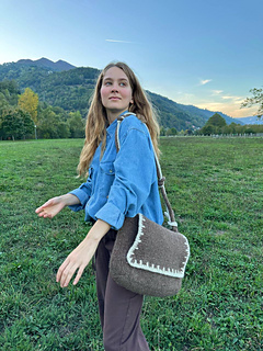 To get such a bag, you have to knit a huge bag and then felt it in the washing machine. 100% wool shrinks at 40 degrees Celsius and high spin speed. And you end up with a perfect winter cross-body bag. It’s very durable and doesn’t need any lining