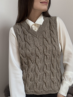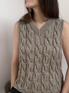 The Knitonomy Grayling V-neck Vest is a top down knit.