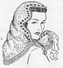 Infant’s wool or slightly heavier yarn is used in making this knitted babushka. The original was made of white (about 4 balls)