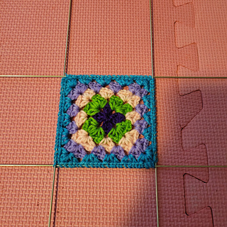 Use the same yarn type as the body of your Geddy in different colors for each tier. I used Malabrigo Rios for my Geddy Tee and my crocheted squares, which is a bit heavier than the yarn used in the original pattern.