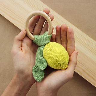 This cute lemon with leaves teether made from cotton yarn and an unfinished natural wooden ring and can be used for chewing while teething. They can also be a great car seat toy or baby shower gift for a new mom!
