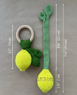 THE PATTERN INCLUDES: Row numbers for each step so you don’t lose your place, instructions for making the teething ring, photos, videos, a list of abbreviations, a materials list. The pattern is 12 pages and written in English. The pattern is intended for beginner users. The basic yarn for knitting lemon teething ring toy is shown in the pattern; also you can use suitable analogs.