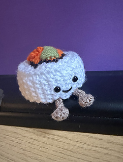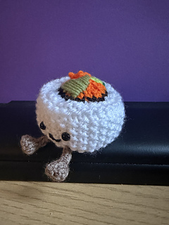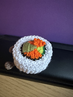 Little knitted sushi knitted flat and sewn together with an simple embroidered top - basic stitches to fill in other colours