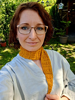 Der Knospen Scarf ist ein schönes, leichtes und schnell gestricktes Tüchlein, was auf vielerlei Arten zum Einsatz kommen kann. Durch die ganz variable Längenanpassung kann es mehrmals um den Hals gewickelt, oder auch nur zu einem Haarband gebunden werden. Das luftige aber auch interessante Muster ist ein echter Hingucker und macht das Stricken angenehm abwechslungsreich.