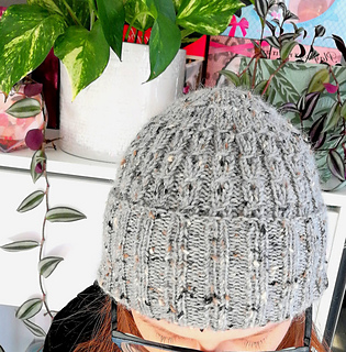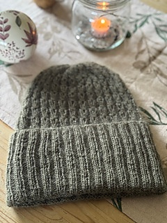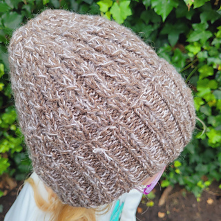 Der Koffieboon Hat wird von unten nach oben in Runden gestrickt. Er wird am Bündchen begonnen und nach Abschluss der Abnahmen für die Spitze beendet.