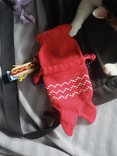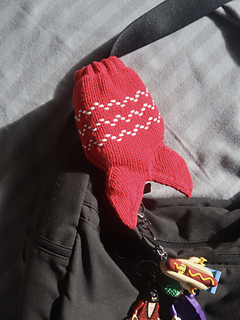 Finally, the tail is shaped by placing the held stitches back onto the needles and working the right and left fins one at a time.
